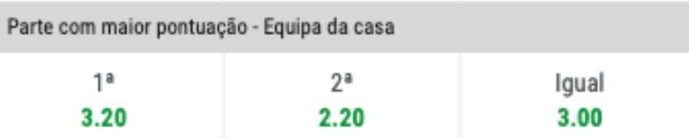 Podes apostar também na parte com maior pontuação para a Equipa da Casa, ou seja em que parte a equipa da casa irá marcar mais golos.