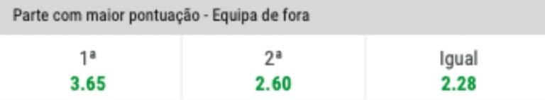 Podes apostar também na parte com maior pontuação para a Equipa de Fora, ou seja em que parte a equipa de fora irá marcar mais golos.